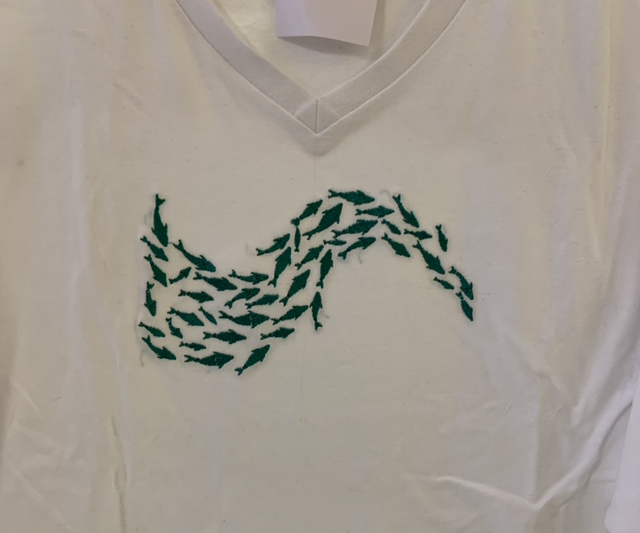 T-shirt Blanc Broderie Banc de Poisson - 5XL